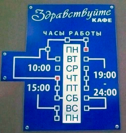 По-моему, это гениально, считает Влад Дислав. Клиент хочет только узнать расписание, а ему уже придется покупать бутылку, чтобы в этом дурдоме разобраться.