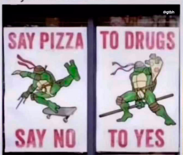 Я это читаю как Say no say yes. To drugs to pizza.