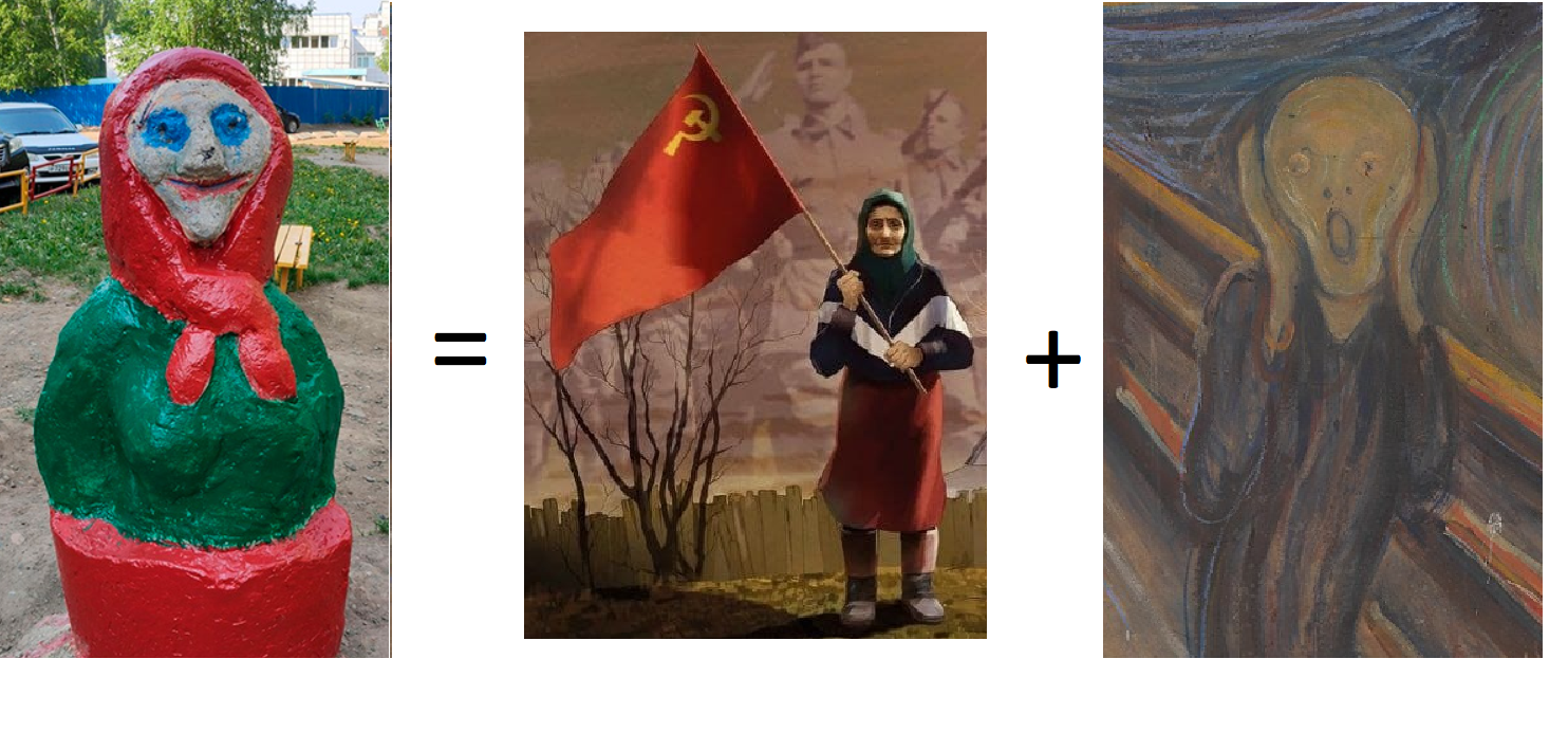 Тут тоже эдакий замысловатый креатив, рассказал Val. Что интересно, если фигурка слева вытянется в полный рост, то она будет в два раза выше фигурки справа.