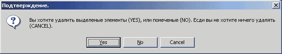 По кнопочке "Да" программа выполнит действие, по кнопочке "Нет" - другое действие, а по кнопочке "Отмена" вызывается телефонистка. Надо было штук пять кнопочек забузолить - для дружественности.