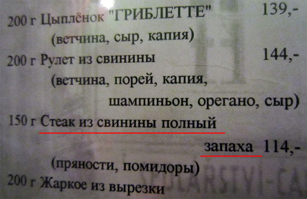 Закусить Ольга предлагает стеаком из свинины полной запаха!