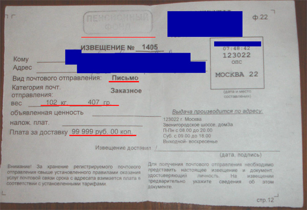 Вот такое письмецо пришло от пенсионного фонда, рассказала Наталья. Видимо, они пенсию решили гантелями выдавать.