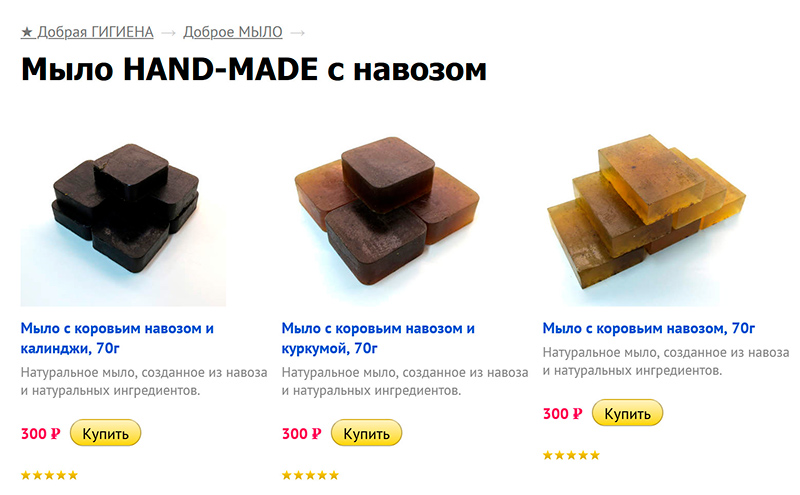 (Ну а мыло с навозом -- это, видимо, для любителей Аюрведы и прочего псевдо-индуизма.)