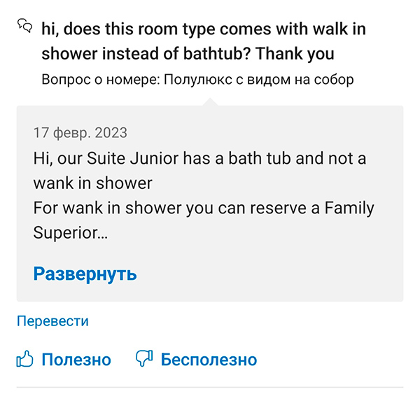 - Привет, в этом типе номера душевая кабина вместо ванны? Спасибо.