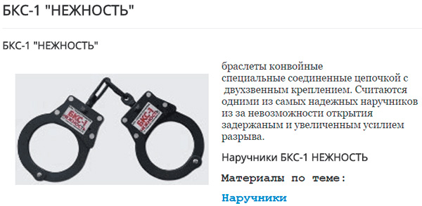 Тут главное, считает Анатолий, правильное название подобрать. Ведь в КБ при МВД работают романтичные, тонко чувствующие люди. Наручники "нежность", дубинка "предварительные ласки", паяльник "поцелуй".