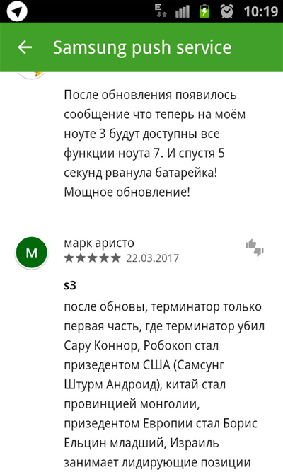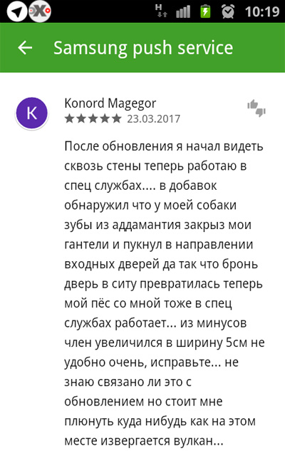 Программа Samsung Push Service, которая непонятно что делает и непонятно зачем вообще нужна, сообщила о том, что она обновилась, рассказал Ветер. Ну и пользователи дружно откликнулись на это волнующее событие.
