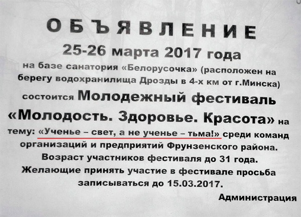 Не шибко грамотная Администрация, замечает Михаил, пытается пропагандировать образование. А сами-то, сами...