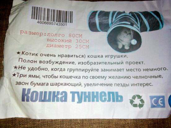 "полон возбуждение" ... "увеличение пезды интерес" .. "кошка туннель" - в этом обявлении прекрасно всё. Только вот английское "pussy" с ошибкой перевели...