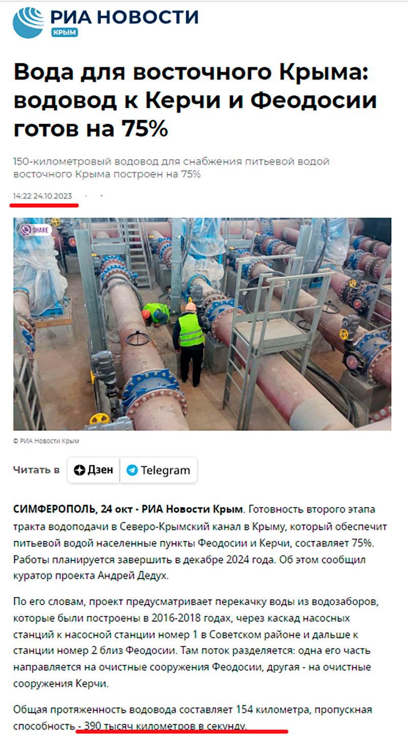 Ну всё, кранты Керчи и Феодосии, грустит Иван, смоет на хрен. Даже если это не километры, а кубометры - все равно кранты! И не только им! Вода, летящая со скоростью выше скорости света - это будет что-то страшное! Впрочем, может, все-таки не достроят, как обычно?
