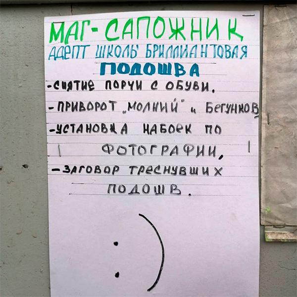 Сапожник явно с юмором, считает Дана, к такому прям хочется обратиться за приворотом молнии.