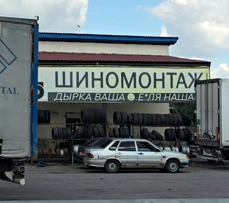 Воронежская область, рассказал Ktibr, шоссе М4. Вот такой незатейливый креатив. А что, дальнобойщикам, говорят, нравится. "Дырка ваша, гы-гы", - говорят дальнобойщики и одобрительно матерятся в густые усы.