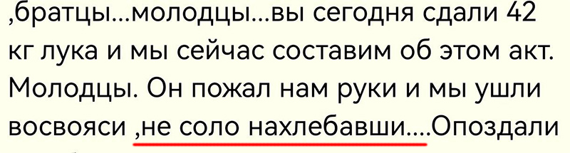Ну что, замечает Евгений, легендарной "в крации" теперь нужно потесниться. Потому что "не соло нахлебавши" - это еще круче! Впрочем, не очень понятно, почему "восвояси" не написали как "во свояси". Ни свояси себе!
