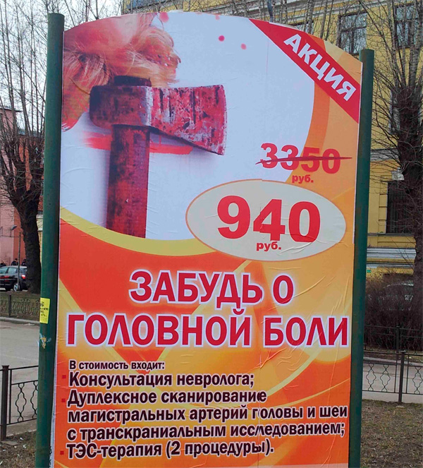 Ну, те-то с автомойкой - просто дебилы, соглашается Дмитрий, но зато вот вам креатив от веселых медиков. Прям так и тянет обратиться в эту контору, так и тянет.