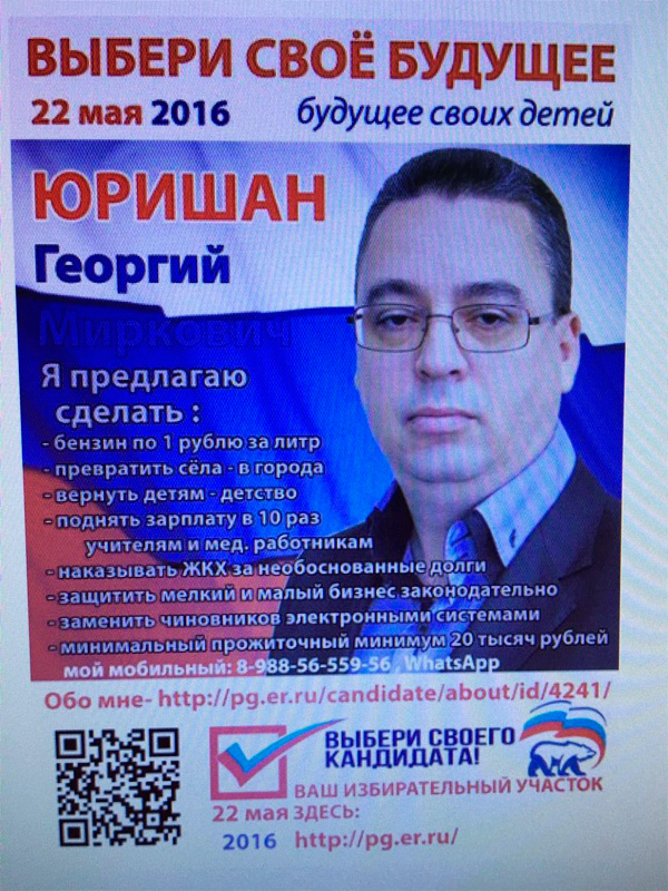 Mirmur: Ну, наверное, кандидат мог бы и поскромнее себя рекламировать. Как-нибудь так, например: