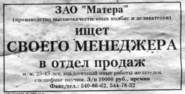 У ЗАО "Матера", грустит Владимир, пропал менеджер. То ли запил, то ли загулял...