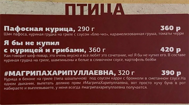 Михаил побывал в кафешке "Сочно", где меню явно составлял очень креативный человек.
