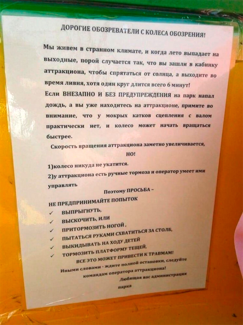 Если вы собираетесь обозревать с колеса обозрения, замечает Михаил, то вам нужно знать определенные правила обозревания с колеса обозрения.