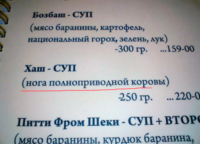Там меню с полноприводной коровой явно связано с моей исторической родиной, но я никак не могу понять, что имелось в виду под «национальным горохом» ….