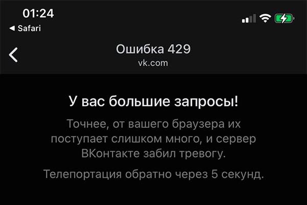 Ну так, для этого там дальше и написано: «Точнее, от вашего браузера их поступает слишком много».