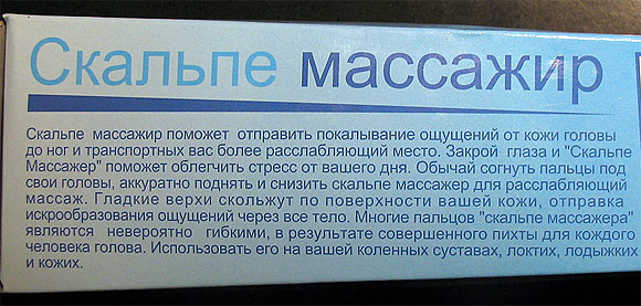 Друзья китайцы, как рассказал Sasch, предлагают нам волшебный скальпе массажир. И подробно объясняют, что это за зверь такой.