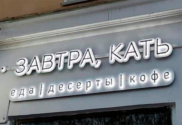 Лучше сходить в "Обе дать", чем "Завтра, Кать", потому что завтра не значит, что, таки Да). И, уж, не более не в "Ужи Надь", потому, как вечером ужи могут оказаться гадюками, да, и, вообще: завтрак съешь сам, а, ужин отдай врагу.
