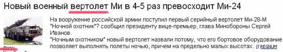 Приятно, радуется Levity, что в России на вооружение поступил такой мощный вертолет! Он даже на вид в 4-5 раз превосходит Ми-24. Особенно если сумеет его догнать...