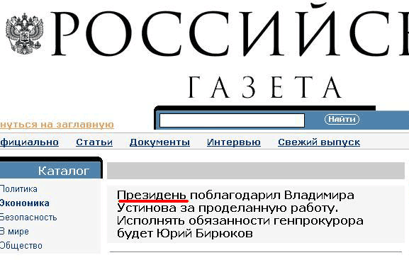 Что-то "Российская газета", замечает Димстер, какая-то не сильно лояльная. Оскорбляет нашего любимого гаранта... Или это она дает тонкий намек на его истинное отношение к бывшему генпроку?