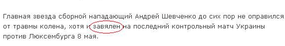 Шевченко завялен на последний матч, удивляется Андрей. "Как это?" - интересуется он.