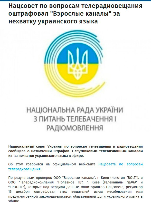 Вот такие дела, грустит Дмитрий, оштрафовали "Взрослые каналы". Украинского языка там не хватает в особо динамичных сценах.