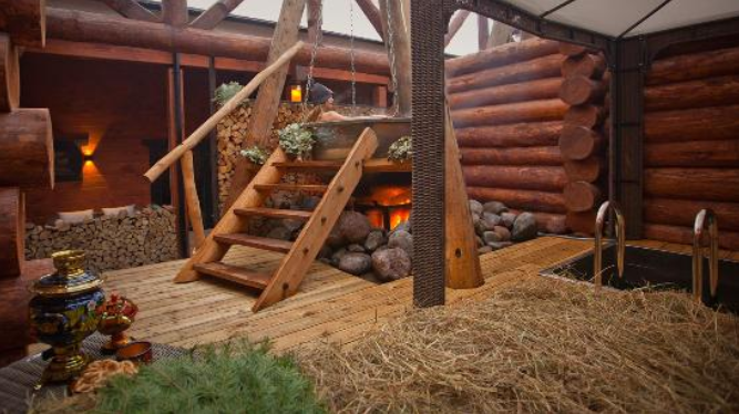 Вы почувствуете, завлекает Ольга, как аромат всевозможных трав смешивается с дымом разгорающихся березовых дров под вами. А когда вода в чане наконец закипит - вот тут-то вы и воспарите!