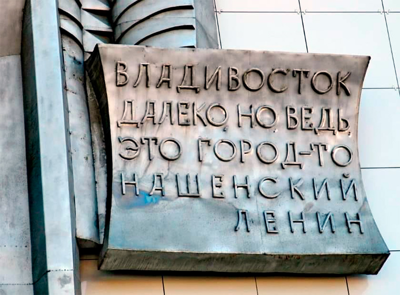 Константин прислал табличку, висящую во Владивостоке, с цитатой Ленина. Ну, что это город ихнинский - оно понятно. Но от кого далеко находится Владивосток для жителей Владивостока, читающих данную табличку?