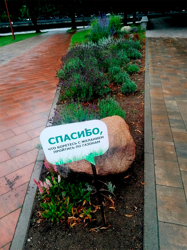 Вообще-то это не тот газон, по которому тянет пройтись, считает Андрей, но слово "спасибо" - и кошке приятно!