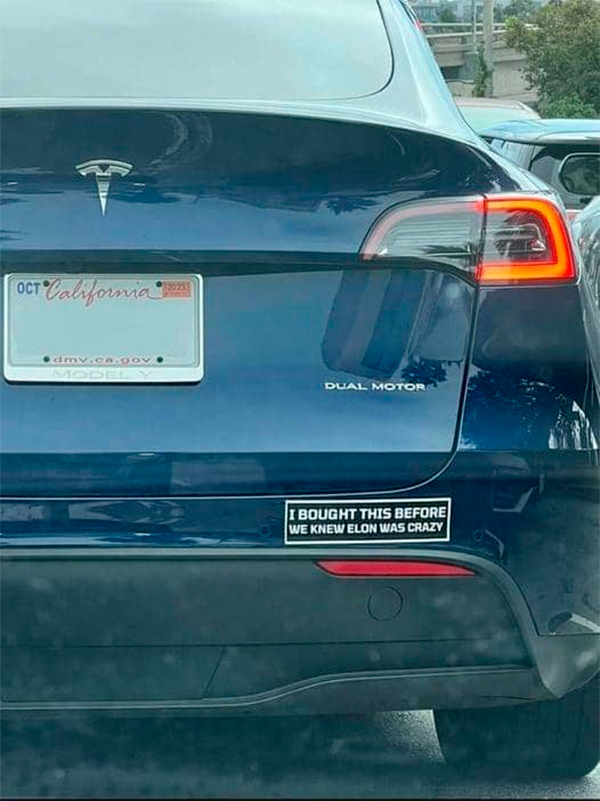 Надпись на "Тесле": “Я купил это до того, как мы узнали, что Илон сошел с ума”, рассказал Виктор.