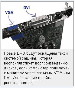 Вы поняли? Так что теперь если монитор подключен к компьютеру через любой из обычных портов - диски работать не будут. А вот если монитор подключен к компьютеру через USB, COM, LPT или через задницу - тогда диски начнут воспроизводиться безо всяких проблем. Мудро.