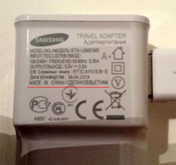 Samsung, замечает Antineri, уже сам запутался в том, где он производит свои адаптеры. Китай, Вьетнам - какая, в общем, разница, да?..