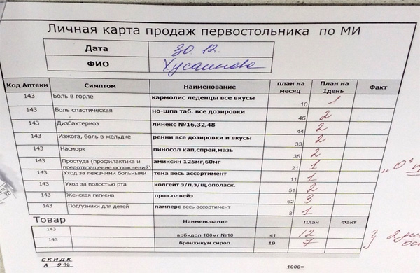 Tarantsevan сделал шпионскую фотку в одной аптеке: он сумел заснять план по валу, спускаемый в аптеки. Очень мило, что фуфломицины арбидол и амиксин российским жителям впаривают не просто так, а по плану.