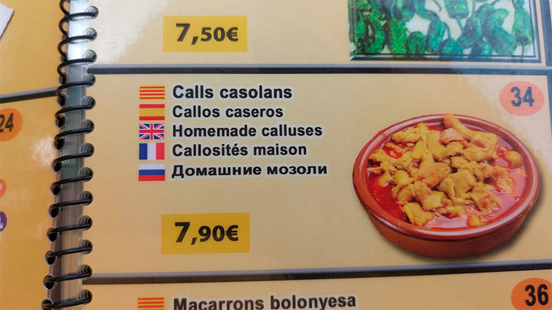 Кстати, callos - это действительно мозоли, но также еще и рубец. Так что это рубец по-домашнему. Говорят, вкусно, но я не пробовал.