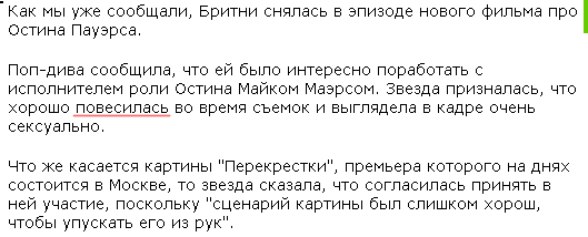 Дни.ру, как сообщает Екатерина, опять все перепутали. По их данных выходит, что Бритни Спирс во время съемок...