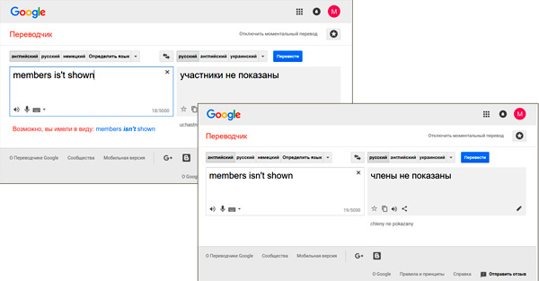 Этот загадочный переводчик "Гугла" выражения с ошибкой переводит правильнее, чем без ошибки, удивляется Сергей.