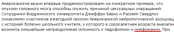 Наука умеет много гитик, как нам рассказал Yuri Bl. Оказывается, опухоли мозга могут приводить к педофилии у мужчин: