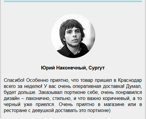 Юрий из Сургута, удивляется Кирилл, радуется тому, что портмоне доставили в Краснодар, а не в Сургут. Видать, хреновенькое было портмоне...
