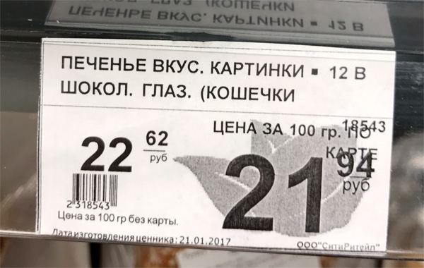"Печенье вкус картинки в шоколадный глаз кошечки" - это шедевр. И скидка там знатная, с такой скидкой нужно впрок пяток килограммов срочно купить!