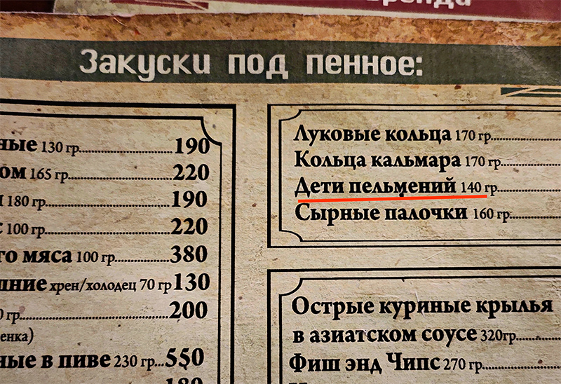 Ну, это еще ладно, но что означает "дети пельмений"? Вы когда-нибудь видели, как размножаются пельмени, и что там в итоге выходит? И почему "пельмений", а не "пельменей"? Может, это имеется в виду какой-нибудь отец Пельмений?