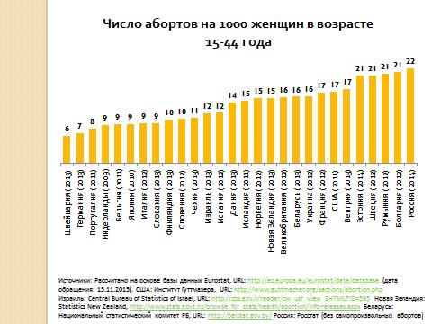 Статистика на 1000 женщин для этого показателя нестандартная, если там Россия и улучшила показатели, то только за счет чудовищного падения рождаемости. А по нормальному показателю числа абортов на количество рожденных Россия всё в той же заднице