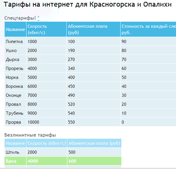 Это еще что, замечает Люция. Один красногорский провайдер в тарифных планах вообще жжот синим факелом.