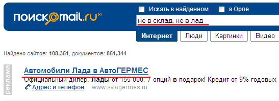 Зато поиск на Mail.ru, радуется Charl le Magne, демонстрирует отличную релевантность.