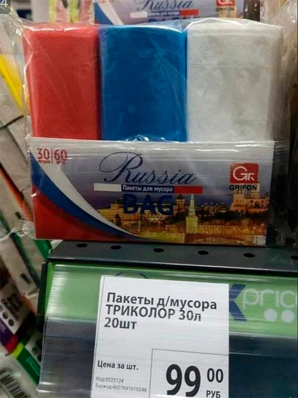 А вот кому патриотичненькие пакеты для мусора, завлекает Лана? Купите, предводитель. Вы, кажется, любите!