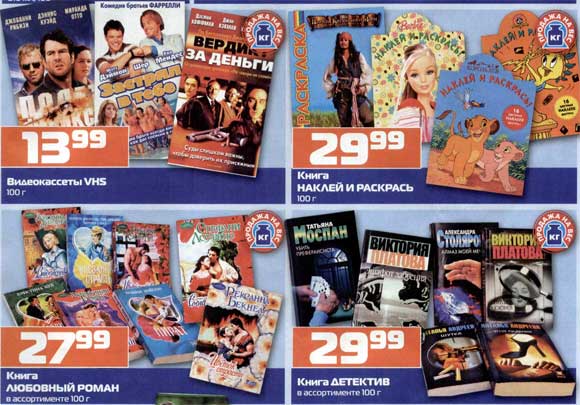 В магазинах "Патерсон", как рассказал Алексей Ситников, видеокассеты, книги и диски теперь продают на вес. А что, очень удобно...