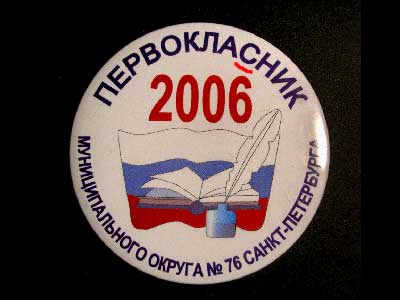 В Питере, рассказала Ольга, первоклассникам Фрунзенского района взрослые дяди выдали вот такие значки. Сами взрослые дяди, судя по всему, в первый класс сходить в свое время так и не удосужились.