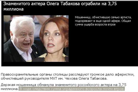 Какой ужас, возмущается Денис. Табакова ограбили почти на 12 миллионов рублей! И кто?!! Посмотрите на фото!
